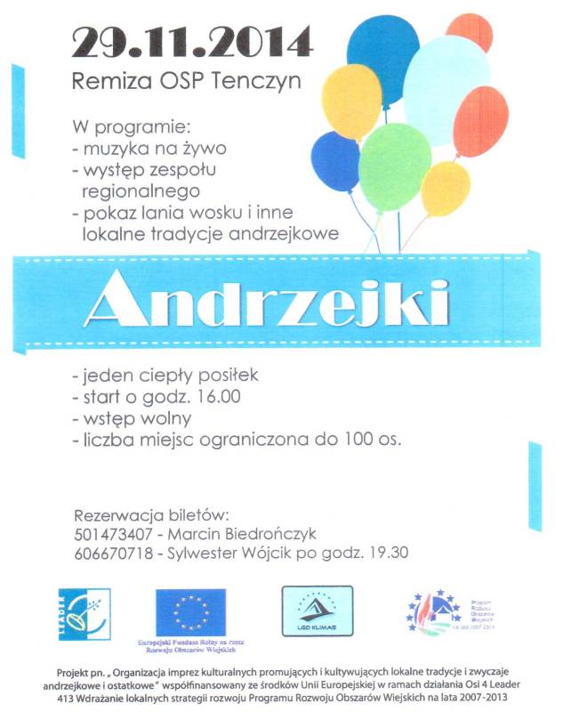 Jedna z dwóch imprez realizowanych przez Ochotniczą Straż Pożarną w Tenczynie w ramach projektu pn. Organizacja imprez kulturalnych promujących i kultywujących tradycje i zwyczaje andrzejkowe i ostatkowe.
