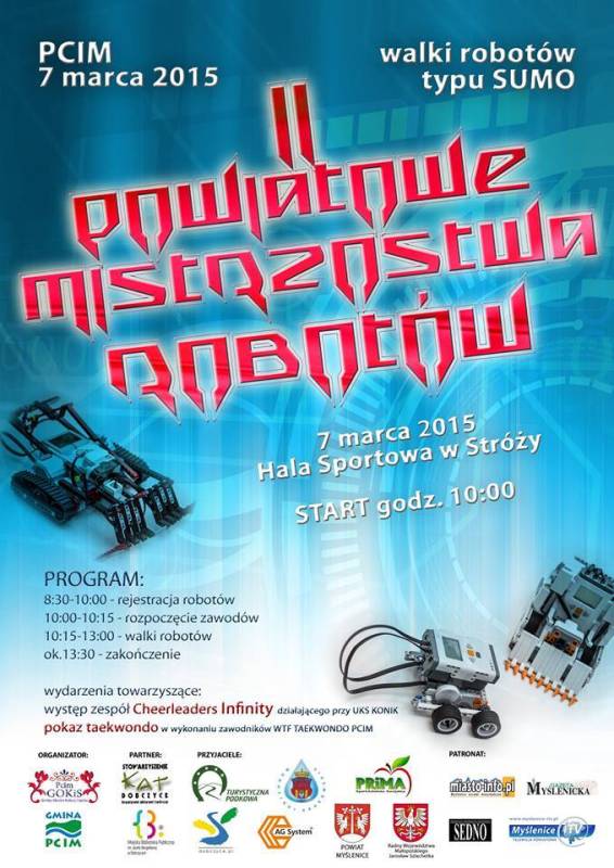 Gminny Ośrodek Kultury i Sporu w Pcimiu serdecznie zaprasza do obejrzenia II Powiatowe Mistrzostwa Robotów.