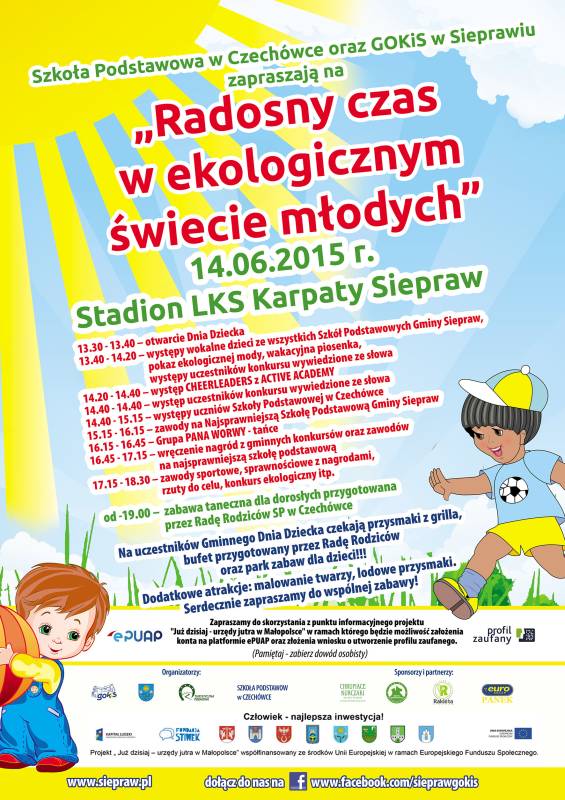 Zapraszamy na Gminny Dzień Dziecka - 14 czerwca 2015 r. od godziny 13.30 Stadion LKS Karpaty Siepraw.