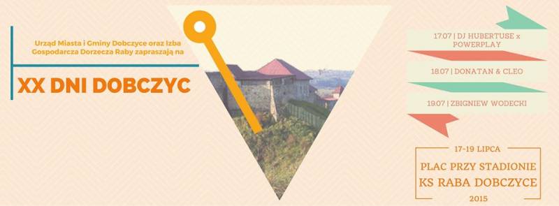 Urząd Miasta i Gminy Dobczyce oraz Izba Gospodarcza Dorzecza Raby ma zaszczyt zaprosić Was na Jubileuszowe XX DNI DOBCZYC 2015 ! Tegoroczne Święto Miasta odbędzie się w dniach 17-19 Lipca na scenie przy stadionie KS Raba Dobczyce.