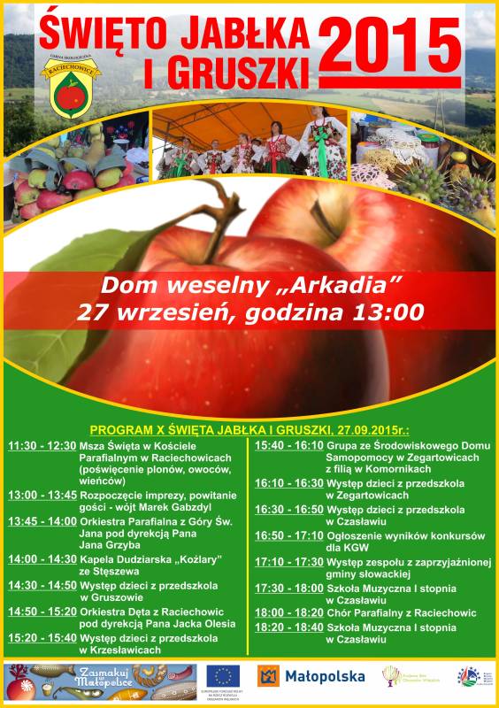 W najbliższą niedzielę, 27 września 2015 r, na placu przy Domu weselnym "Arkadia" w Czasławiu odbędzie się doroczne Święto Jabłka i Gruszki. Swoimi zbiorami pochwalą się miejscowi sadownicy, a publiczność będzie miała okazję skosztować tegorocznych zbiorów.