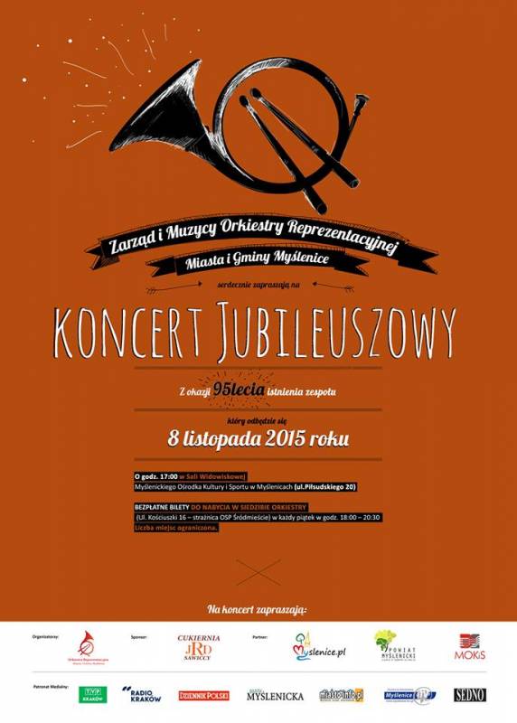 Serdecznie zapraszamy na Koncert Jubileuszowy Orkiestry Reprezentacyjnej Miasta i Gminy Myślenice, która
