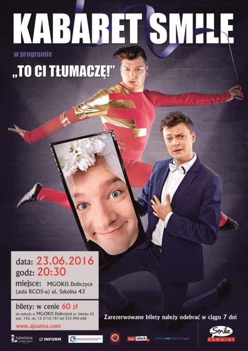 Bilety w cenie 60 zł do nabycia w Miejsko-Gminnym Ośrodku Kultury i Sportu w Dobczycach, ul. Szkolna 43, pokój 143, tel. 12 27 16 757 lub kom. 533 990 660. Zarezerwowane bilety należy odebrać do 7 dni.