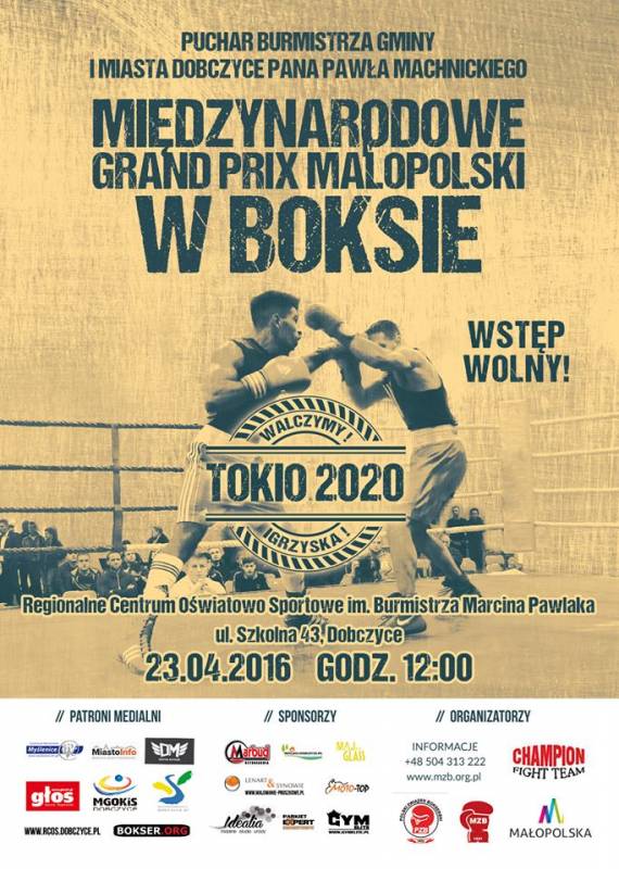 W sobotę, 23 kwietnia w hali sportowej Regionalnego Centrum Oświatowo-Sportowego w Dobczycach odbędzie się Międzynarodowe Grand Prix Małopolski w Boksie o Puchar Burmistrza Pawła Machnickiego. Sparingi rozpoczną się o godzinie 12:00. Wstęp wolny!