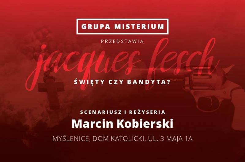 Myślenicka Grupa Misterium chciałaby serdecznie zaprosić na nowy spektakl w reżyserii Marcina Kobierskiego pt. „FESCH - Święty czy bandyta?”.