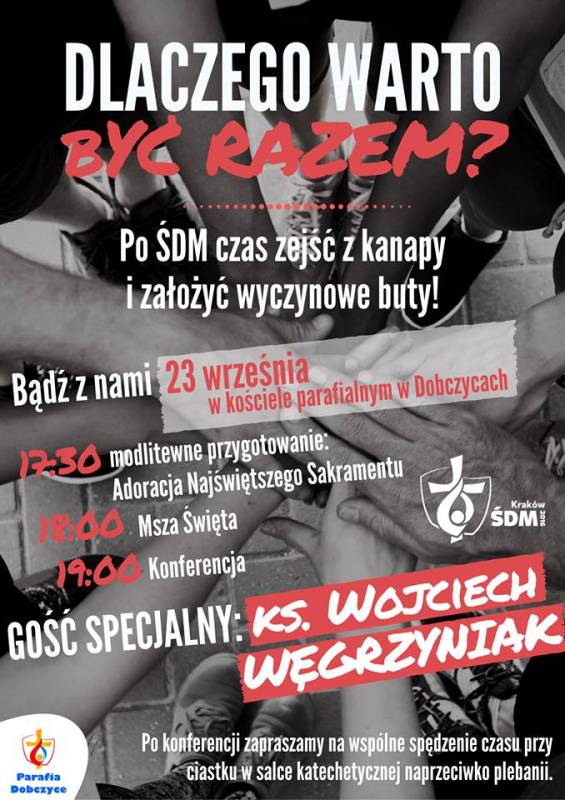 18:00 Msza św. z kazaniem i o 19:00 konferencja. Po niej spotkanie przy