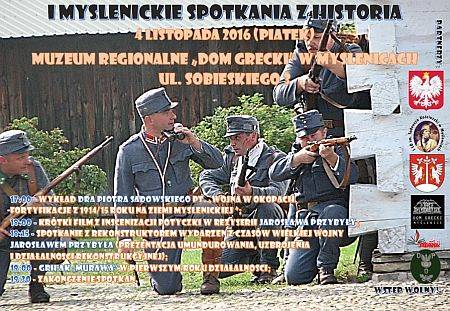 - 17:00 - wykład dra Piotra Sadowskiego pt. "WOJNA W OKOPACH - FORTYFIKACJE Z 1914/15 ROKU NA ZIEMI MYŚLENICKIEJ"