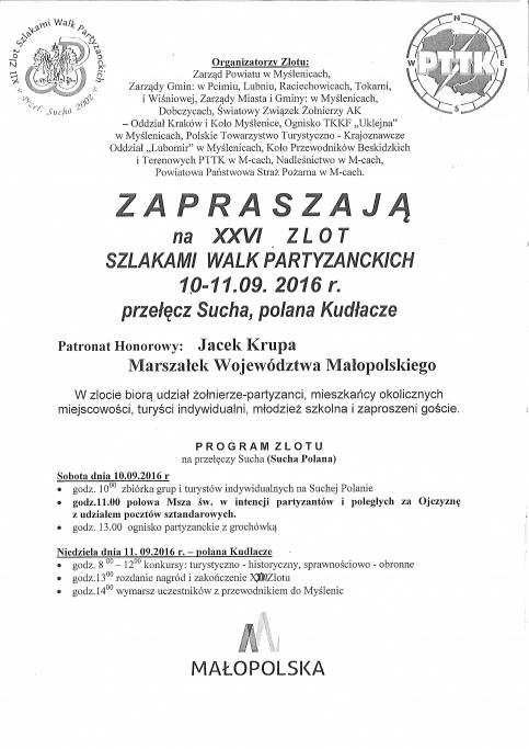 Źródło:http://www.dobczyce.pl/dla-mieszkancow/xxvi-malopolski-zlot-szlakami-walk-partyzanckich-sucha-polana-10-wrzesnia-2016r