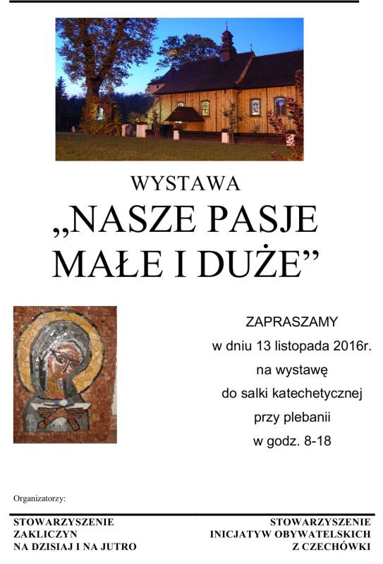 2016r. w godz. 8-18 na wystawę „Nasze Pasje Małe i Duże” która odbędzie