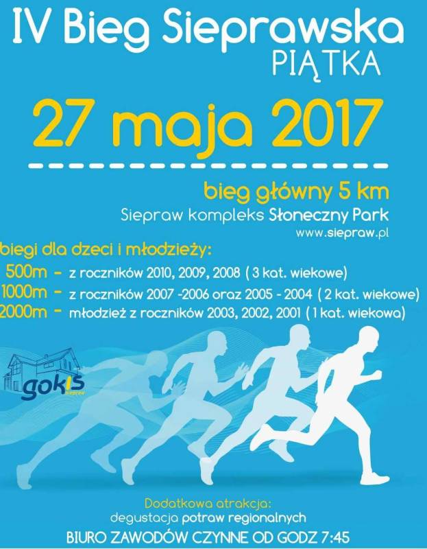 To już IV Bieg Sieprawskiej Piątki! Aby wziąć udział w biegu, należy wcześniej zgłosić swoje uczestnictwo.