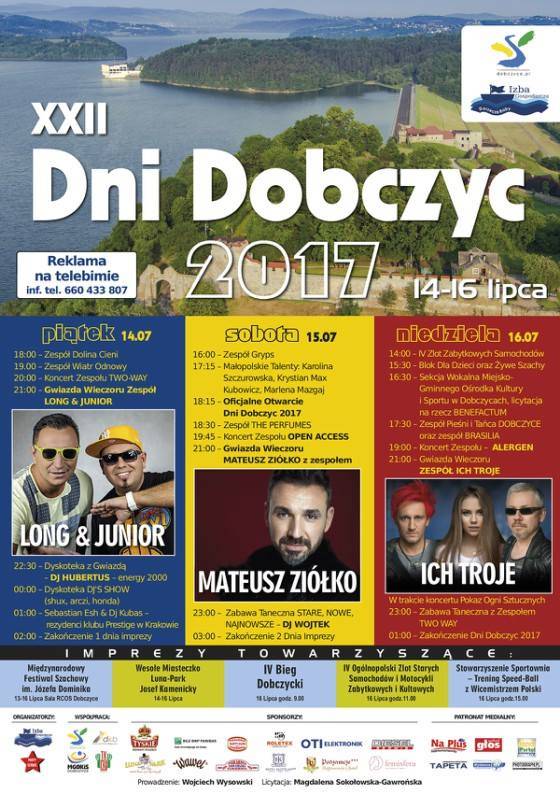 Największa impreza plenerowa, czyli XXII Dni Dobczyc na horyzoncie! W tym roku największymi gwiazdami będą: Long&Junior, Mateusz Ziółko oraz legendarny zespół Ich Troje. Dodatkowo dobrą zabawę gwarantują liczne koncerty i dyskoteki. Dobczyce odwiedzi również zespół folkowy z Brazylii, który wystąpi w niedzielne popołudnie.
