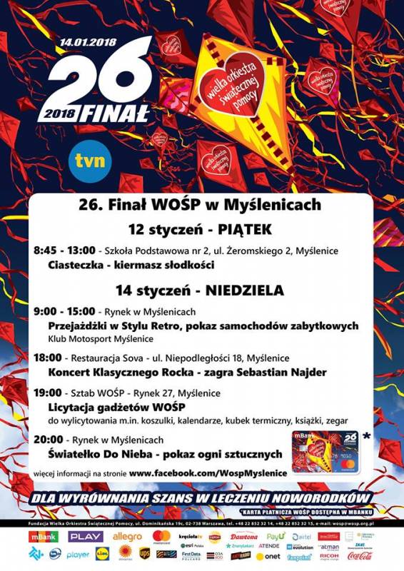 Program 26. Finału WOŚP w Myślenicach ❤️