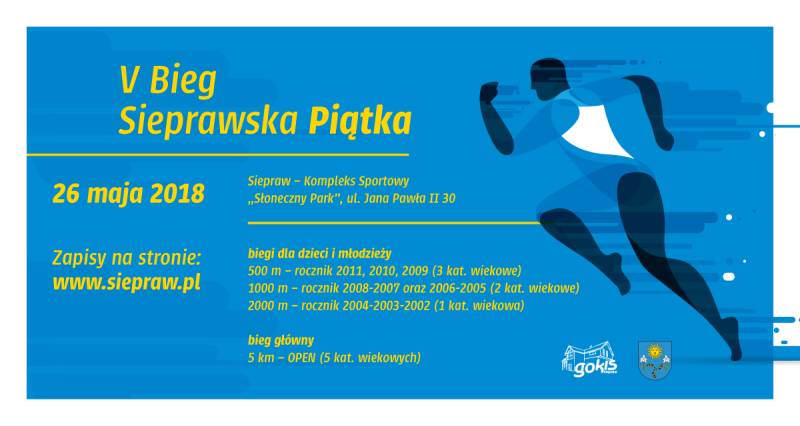 Wszystkich miłośników biegania (i tych małych, i tych nieco starszych) zapraszamy na V edycję Biegu Sieprawska Piątka!