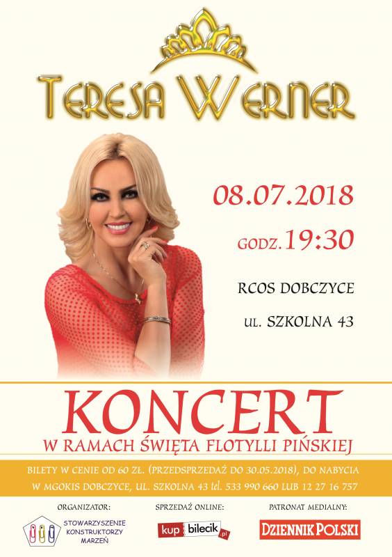 Stowarzyszenie Konstruktorzy Marzeń zaprasza na koncert Teresy Werner, zorganizowany w ramach Święta Flotylli Pińskiej.
