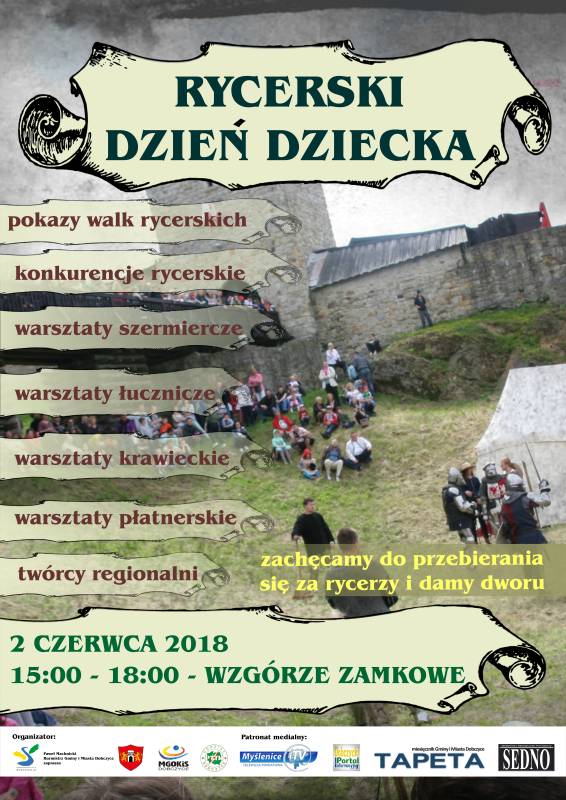 Na Rycerski Dzień Dziecka serdecznie zaprasza Burmistrz Gminy i Miasta Dobczyce Paweł Machnicki. Współorganizatorami wydarzenia są: Niepołomickie Bractwo Rycerskie, PTTK Oddział Dobczyce, MGOKiS Dobczyce, twórcy regionalni. Patronat medialny objęli: Telewizja Powiatowa iTV Myślenice, Dobczycki Portal Informacyjny DPI, Miesięcznik Gminy i Miasta Dobczyce TAPETA, Miesięcznik SEDNO.