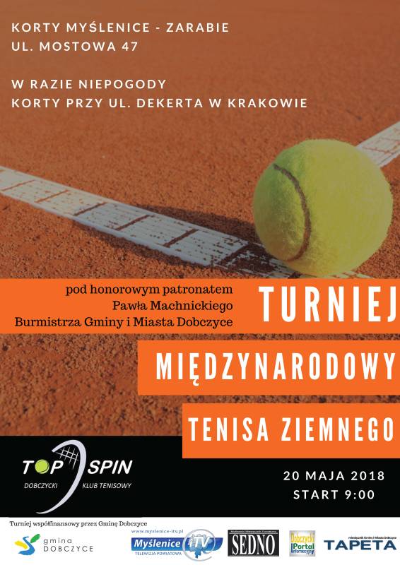 Zapraszamy na Międzynarodowy Turniej Tenisa Ziemnego, który będzie rozgrywany 20 maja od godziny 9:00 przez cały dzień na myślenickich kortach. W turnieju zmierzą się ze sobą drużyny z Włoch, Hiszpanii, Słowacji i Polski. Patronat honorowy nad turniejem objął Burmistrz Gminy i Miasta Dobczyce - Paweł Machnicki.