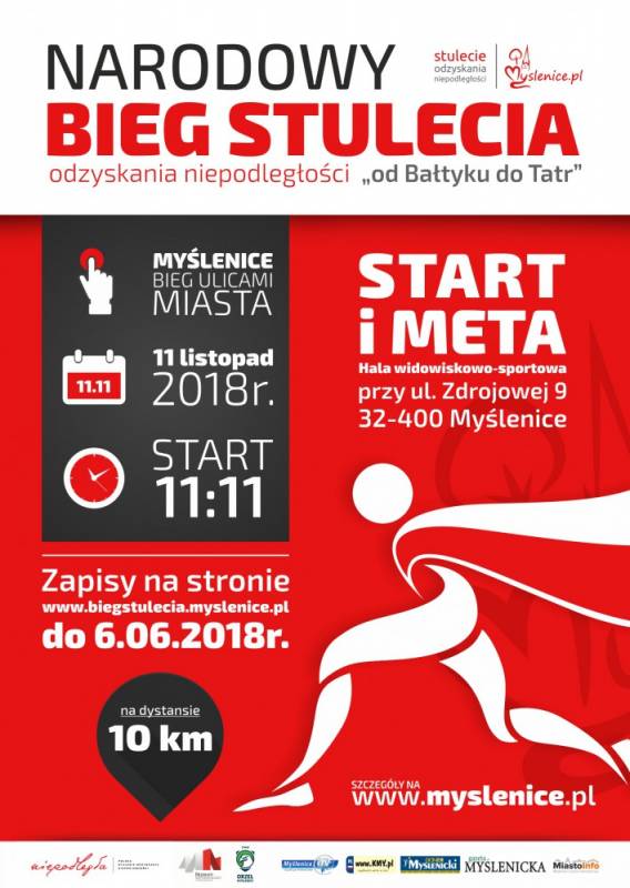 Zapisy do 6.06.2018 na stronie www.biegstulecia.myslenice.pl
