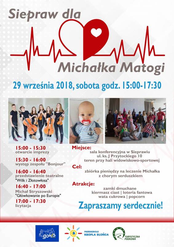 W dniu 29 września od 15.00 będziemy zbierać pieniądze na leczenie Michałka Matogi z chorym serduszkiem.