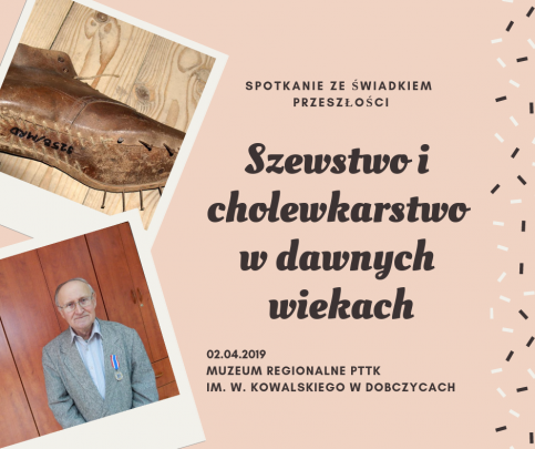 Muzeum Regionalne PTTK im. Władysława Kowalskiego w Dobczycach zaprasza na pierwsze z cyklu spotkanie ze świadkiem przeszłości. Tematem będzie „Szewstwo i cholewkarstwo w dawnych wiekach”, a naszym gościem pan Piotr Przęczek, mieszkaniec Dobczyc, syn cholewkarza. Ojciec przekazał panu Piotrowi wiedze o zawodzie szewca – cholewkarza.