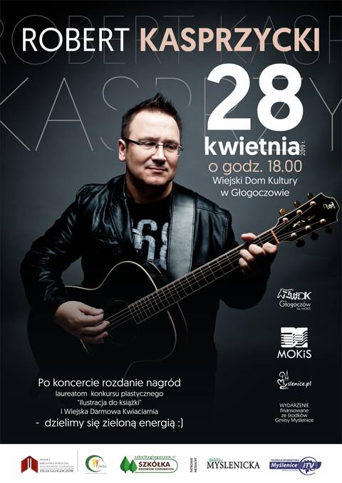 Myślenicki Ośrodek Kultury i Sportu chciałby serdecznie zaprosić na koncert Roberta Kasprzyckiego, który odbędzie się w Domu Kultury w Głogoczowie dnia 28 kwietnia 2019r. o godz. 18:00