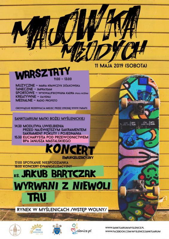 - W programie od rana są między innymi warsztaty kreatywnego myślenia, warsztaty medialne, muzyczne, taneczne, czy sportowe. Następnie w myślenickim Sanktuarium odbędzie się Modlitwa Uwielbienia przed Najświętszym Sakramentem, Msza Święta pod przewodnictwem biskupa Janusza Mastalskiego przed ołtarzem polowym, po której już na Rynku odbędą się koncerty ewangelizacyjne ks. Jakuba Bartczaka, a także zespołów Wyrwani z niewoli oraz Tau. Wstęp jest darmowy – zachęcają organizatorzy.