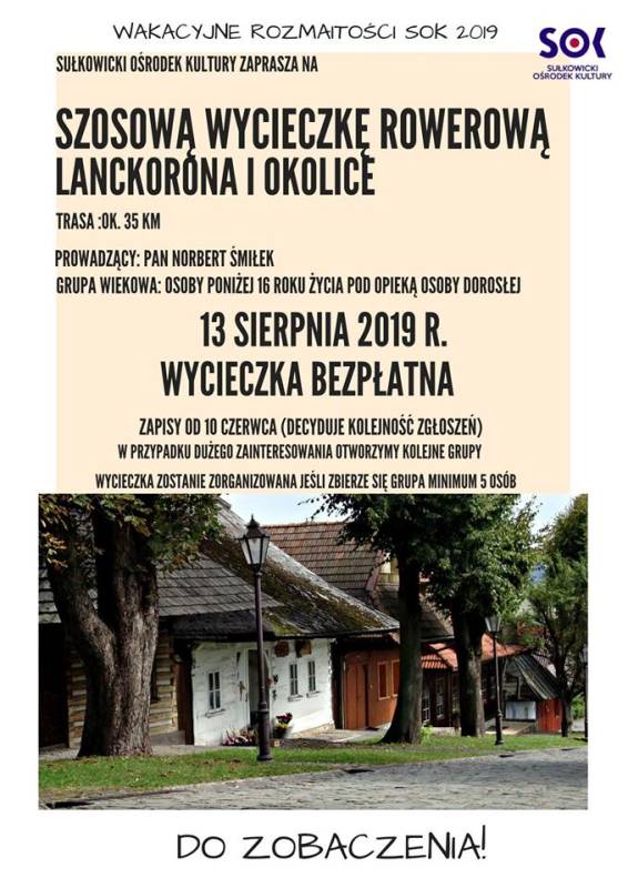 13 sierpnia- Wycieczka rowerowa szosowa do Lanckorony i okolicy