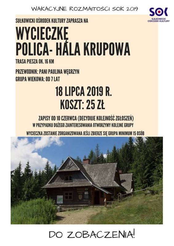 18 lipca - Wycieczka autokarowa -Polica i schronisko na Hali Krupowej w Beskidzie Żywieckim.