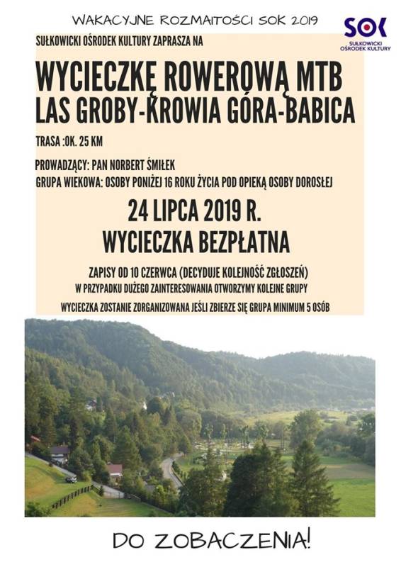 24 lipca- Wycieczka rowerowa mtb- las Groby- Krowia Góra- Babica