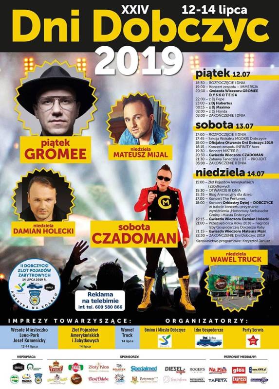 Zwieńczeniem 3 dniowych dni Dobczyc (14 lipca), będzie występ DAMIANA HOLECKIEGO, a także MATEUSZA MIJAŁA.