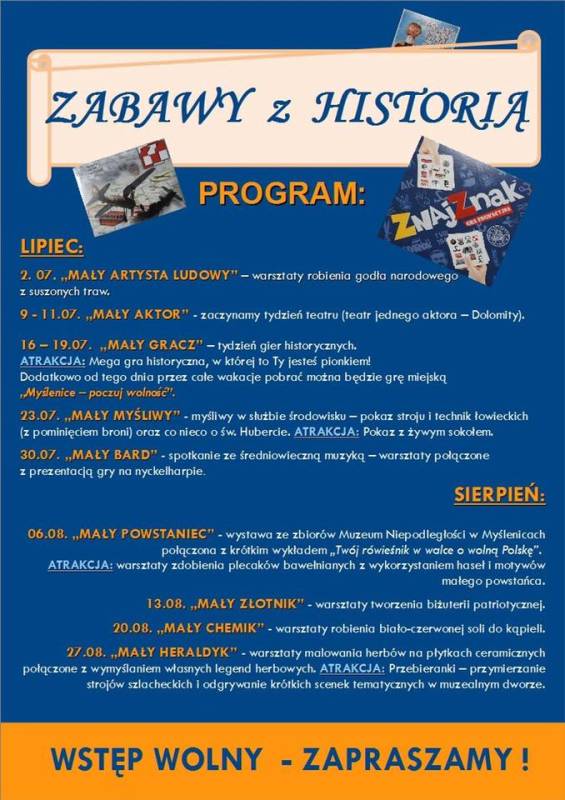 Muzeum Niepodległości w Myślenicach serdecznie zaprasza wszystkie dzieci na zajęcia pod hasłem „Zabawy z historią”.