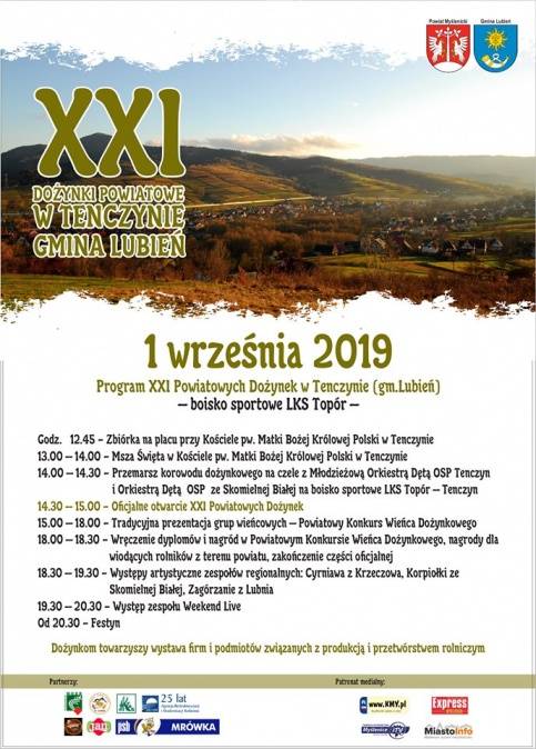 Serdecznie zapraszamy na XXI Dożynki Powiatowe w Tenczynie (Gmina Lubień).