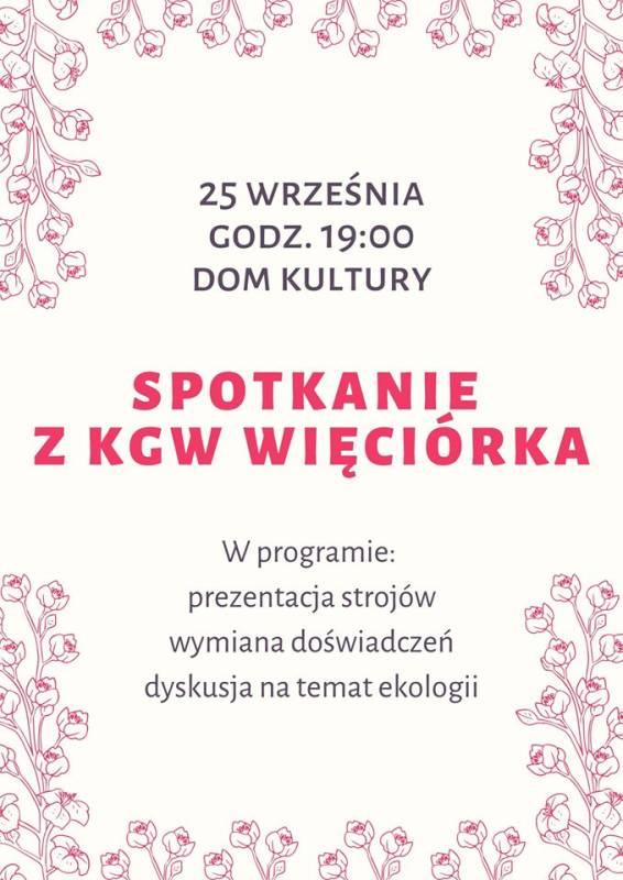 Wszystkie osoby zainteresowane działalnością kół gospodyń i gospodarzy wiejskich zapraszamy na spotkanie, które odbędzie się w środę 25 września o godz. 19:00 w Domu Kultury w Sieprawiu!