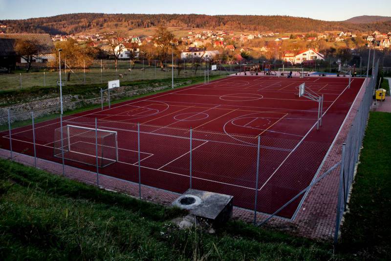 Gruntownie zmodernizowane w 2010 r. wielofunkcyjne boisko sportowe przy zespole szkół w Skomielnej Białej służy nie tylko uczniom, ale wszystkim chętnym. Na nowoczesnej, sztucznej nawierzchni można rozgrywać mecze piłki nożnej, koszykówki, siatkówki, także po zmierzchu dzięki zainstalowanemu sztucznemu oświetleniu.