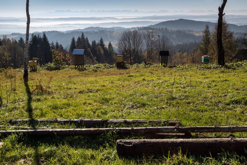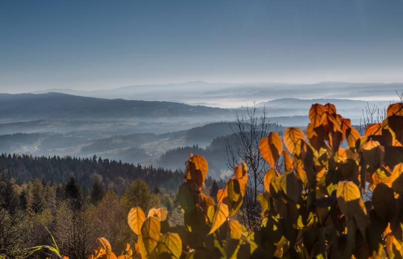 Ze stopniowo zarastającej polany między szczytami Gronia oraz Stołowej Góry, na której stoją zabudowania przysiółka Groń, rozciąga się rozległy widok, przede wszystkim na południe: od południowego wschodu widoczne są wzniesienia Beskidu Wyspowego z dominującym Luboniem Wielkim, dalej na południe rozciągają się grzbiety Gorców. Wprost na południe ponad niskim Pasmem Podhalańskim widać często koronkowe granie tatrzańskie. Dalej na południowym zachodzie przy dobrej pogodzie są widoczne góry Słowacji, zaś panoramę od prawej, zachodniej strony zamyka widoczny w dużym skrócie masyw Babiej Góry z niższym, zalesionym Pasmem Policy.