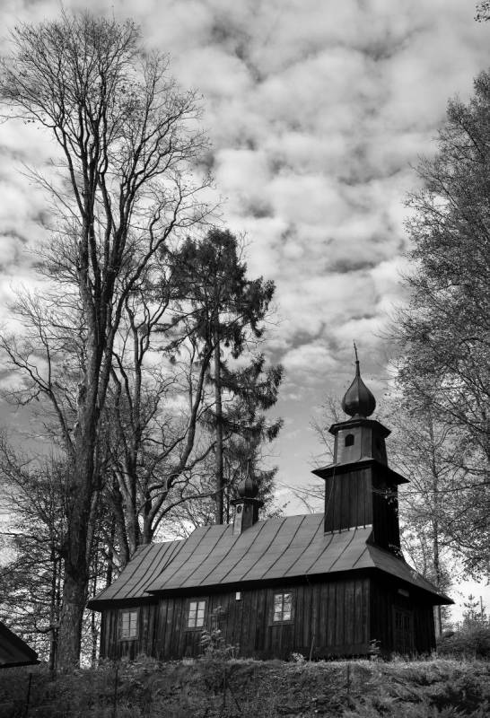 Kaplica wznosi się w pobliżu kościoła oraz domu rekolekcyjnego św. Ojca Pio, który zastąpił dwór. Drewnianą kaplicę ufundowali pod koniec XVIII w. właściciele wsi z rodziny Łodzińskich. Powstała wtedy niewielka kaplica to obecne prezbiterium – w 2. poł. XIX w. została ona rozbudowana. Dodano nawę o konstrukcji szkieletowej, oszalowanej deskami, oraz wieżę o konstrukcji słupowej, zwieńczoną niewielkim hełmem obitym blachą z cebulastym zwieńczeniem. Nawę i prezbiterium przykrywają również blaszane dachy, zaś na kalenicy nad nawą umieszczono małą cebulastą wieżyczkę na sygnaturkę. Całość przypomina niewielki kościół drewniany. Wnętrze kaplicy ozdabia neobarokowy ołtarz z końca XIX w. z obrazem Nawiedzenia NMP. Na ołtarzu widnieją także herby Radwan (Łodzińskich) i Trąby (Jordanów).