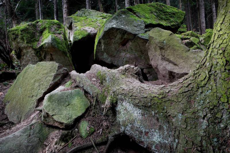 Niezwykłe miejsce, zwane Lisimi Jamami, ukryte w lesie poniżej Plebańskiej Góry z rumowiskiem głazów oraz wąskimi jaskiniami to pozostałość wielkiego osuwiska, które częściowo nadal jest aktywne. Bloki skał piaskowcowych w wielu miejscach w wyniku osunięcia uległy spękaniu, tworząc głębokie szczeliny i jaskinie. Miejsce to jest doskonałym przykładem charakterystycznej rzeźby osuwiskowej z wysoką niszą, odsłonięciem skalnego podłoża i podmokłym terenem podniszowym.