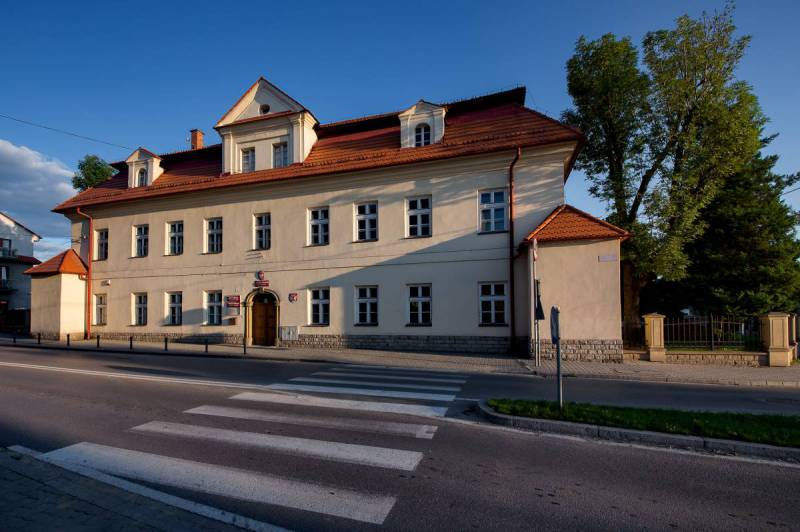 Starostwo Powiatowe w Myślenicach zajmuje interesujący, zabytkowy gmach z lat 80. XVIII w. Podczas budowy wykorzystano materiały z rozbieranego renesansowego dworu Jordanów, który stał po przeciwnej stronie ul. Reja. Późnobarokowa fasada wyróżnia się portalem arkadowym z kluczem w łuku kloszowym. Narożniki wzmocnione są szkarpami. Całość wieńczy gzyms podokapowy oraz łamany dach z facjatkami. Na parterze zachowane są sklepienia kolebkowe z lunetami.