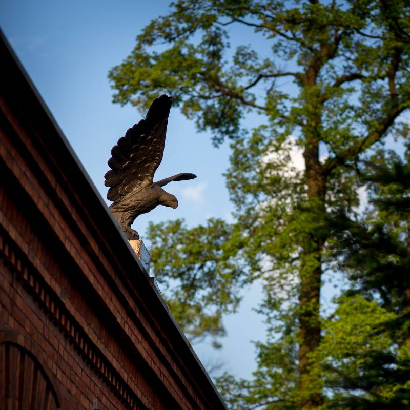 Ceglany, parterowy budynek w stylu historyzującym powstał w 1902 r. dla Towarzystwa Gimnastycznego „Sokół”, założonego w Myślenicach w 1894 r. Pierwotnie przed nim stał Pomnik Niepodległości, odsłonięty w 1928 r. i usunięty w okresie okupacji hitlerowskiej.