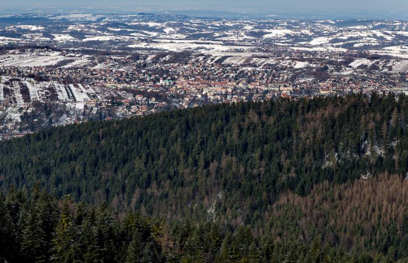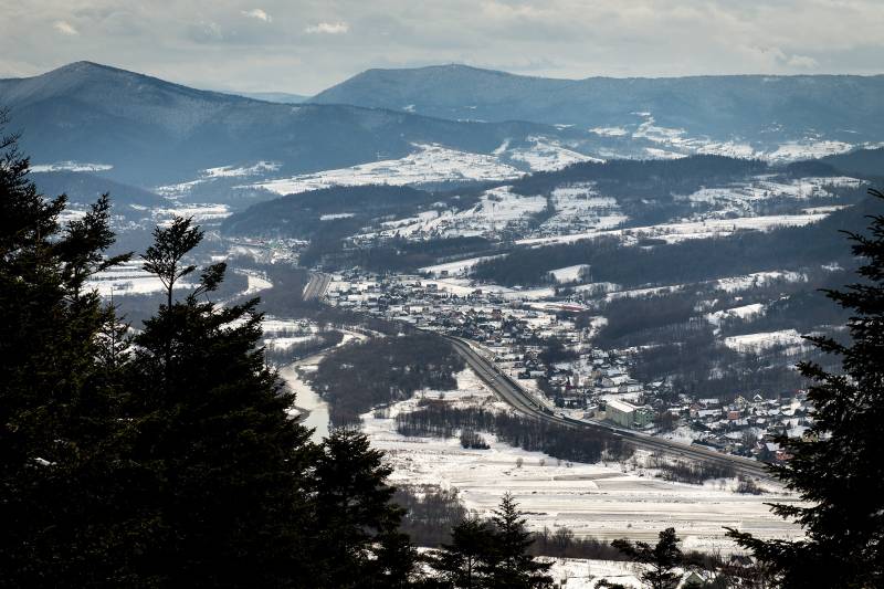 Ciekawy widok obejmuje całą okolicę – na północy co prawda dalszą perspektywę przesłania zalesiona, wyższa Uklejna, ale i tak widać Myślenice oraz Pasmo Dalina; dalej na zachodzie wznoszą się pasma Sularzówki i Babicy, następnie Kotonia i dalej na południe Zembalowej. Góruje nad nimi odległa Babia Góra. Ku południu wzrok biegnie ku szczytom Lubonia i Szczebla. Dalej od wschodu widać jeszcze Lubogoszcz, ale dalszą część panoramy zasłaniają dużo wyższe od Chełmu, niedalekie szczyty Lubomira i Łysiny.