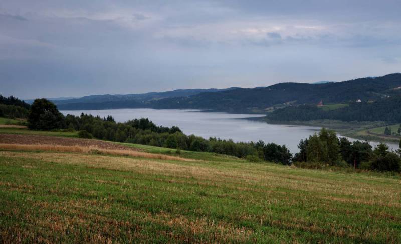 Z drogi przez osiedle Nadrabie rozciąga się wyjątkowo malowniczy widok na zaporowe Jezioro Dobczyckie. Ponad taflą jeziora wznoszą się po drugiej, południowej stronie wzgórza Pasma Ostrysza, a dalej widoczne są doskonale szczyty Beskidu Wyspowego: od zachodu widać zalesioną ścianę Uklejny, masywny Kamiennik i wyrastający zza niego szczyt Łysiny, dalej ku lewej wzrok biegnie ku szczytom Śnieżnicy i Cietnia.