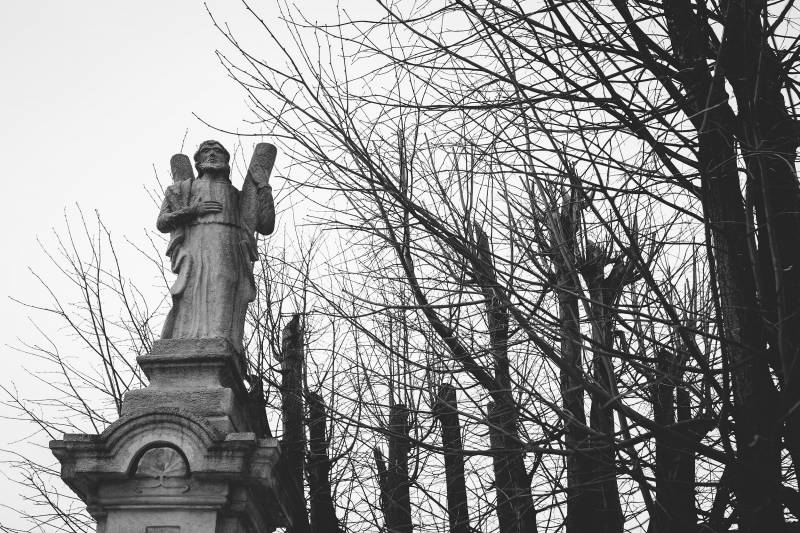 Kamienny posąg św. Andrzeja ustawiony jest na wysokim postumencie o charakterze późnobarokowym, stojącym na szerszym nieco stopniu. Dolna część postumentu ujęta jest w wąskie, wydłużone spływy wolutowe, a w centralnej płycinie umieszczono inskrypcję upamiętniającą fundatora: Jędrzeja Sarafina oraz datę fundacji: 1818 r. Ponad tablicą ozdobne gzymsy wieńczą cokół kapliczki, na którym ustawiono okazałą postać świętego, niosącego symbol swojego męczeństwa – krzyż o charakterystycznym kształcie, zwanym właśnie „Krzyżem św. Andrzeja”.