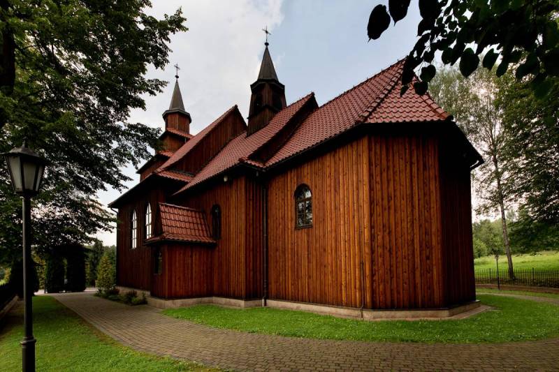 Kościół parafialny pw. św. Anny to budowla drewniana, wzniesiona w miejscu mniejszej kaplicy dworskiej w 1874 r. W okresie międzywojennym został rozbudowany – wydłużono nawę, a na jej przedłużeniu od zachodu dobudowano wieżę. Górne kondygnacje wieży są ośmioboczne, a całość przykryta jest ostrosłupowym hełmem. Wnętrze może się poszczycić częścią rokokowego wyposażenia pierwotnej kaplicy dworskiej, m.in. ołtarzami i amboną. Ciekawostką jest rzeźba Chrystusa Ukrzyżowanego w przedsionku – gotyckie dzieło z 2. poł. XIV w.