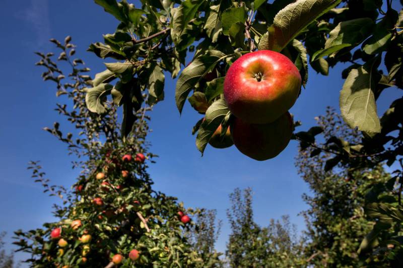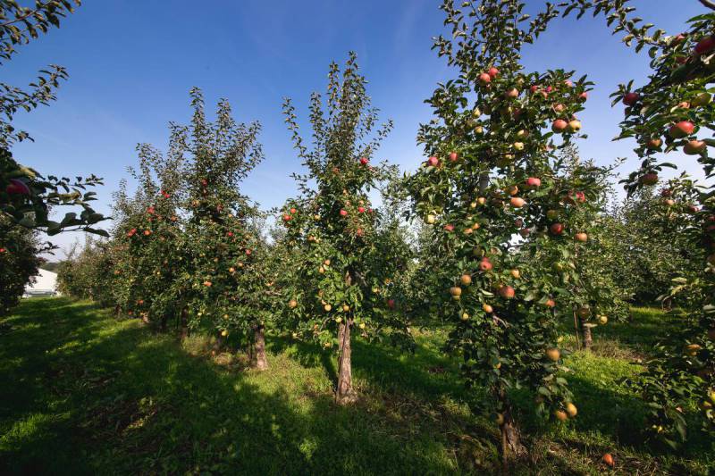 Wzdłuż drogi z Myślenic do Polanki rozciągają się sady owocowe – najpiękniej wyglądają wiosną, w porze kwitnienia drzew owocowych.