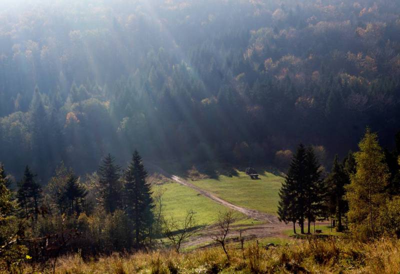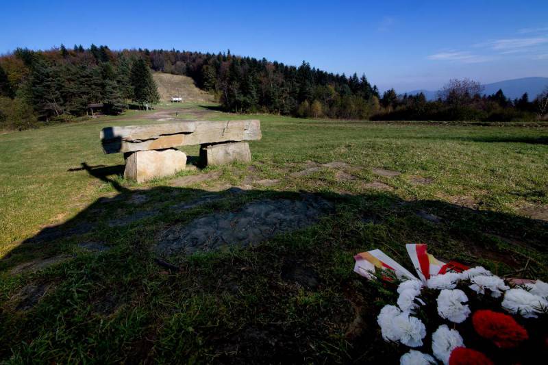 Sucha Polana rozciąga się po południowo-wschodniej stronie przełęczy Suchej (715 m n.p.m.), łączącej Kamiennik z Pasmem Lubomira i Łysiny. Polana jest znana jako najdalej na północ wysunięte w Beskidach stanowisko szafranu spiskiego, popularnie zwanego krokusem. Z polany rozciąga się ograniczony, ale malowniczy widok na grupę Cietnia, Wierzbanowską Górę oraz Śnieżnicę. Jest tu wiata dla turystów, miejsce na ognisko i tablice informacyjne. Na polanie znajduje się pomnik upamiętniający walki i apele zgrupowania partyzanckiego AK, które odbywały się w tym miejscu. Były to oddziały myślenickiego obwodu AK „Murawa”, które od kwietnia 1944 r. koncentrowały się w pasmach Lubomira i Łysiny, Ostrzysza oraz Cietnia. Głównę ich bazą były rozległe lasy na stokach Lubomira i Łysiny oraz Kamiennika. Na Łysinie istniało nawet obozowisko i stały specjalne wieże obserwacyjne. Dzięki działalności partyzantów od końca lipca do 12 IX 1944 r. Niemcy wycofali się całkowicie z rozległego terenu między doliną Raby na zachodzie i północy a Kasiną Wielką, Szczyrzycem i Łapanowem; tymczasowo wyzwolony teren nazywano Rzeczpospolitą Raciechowicką. Po 12 IX niemieckie ataki doprowadziły do rozproszenia zgrupowania, jednak bez większych strat ze strony AK. Obok pomnika na Polanie Suchej jest też ołtarz polowy.