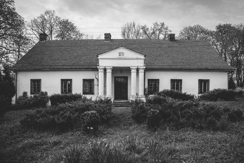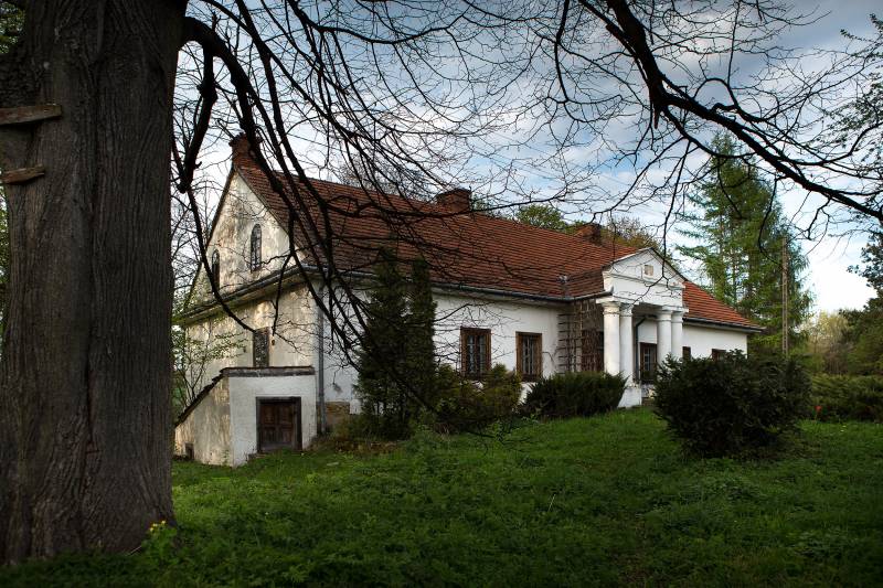 Piękny dwór o doskonale zachowanej architekturze późnoklasycystycznej pochodzi z połowy XIX w. i zastąpił starszy, stojący tu wcześniej drewniany dworek. Często zmieniał właścicieli, a do 1945 r. pozostawał wraz z folwarkiem w rękach rodziny Dziewińskich, którzy zachowali część dworu nawet po reformie rolnej. Budynek jest parterowy, murowany, siedmioosiowy. Od frontu ma charakterystyczny portyk, wsparty na dwóch parach kolumn, wspierający trójkątny tympanon z pozostałościami dwóch tarcz herbowych. Dach dworu jest dwuspadowy, kryty dachówką. Wokół rozciąga się niewielki park krajobrazowy. Pod starą lipą obok dworu stoi murowana kapliczka z ok. 1850 r., z żeliwnym krzyżem z postacią ukrzyżowanego Chrystusa. W pobliżu z zabudowań folwarcznych pozostał lamus drewniany, wzniesiony w tym samym czasie co dwór, oraz starszy, drewniany spichlerz o konstrukcji zrębowej z przełomu XVIII i XIX w.