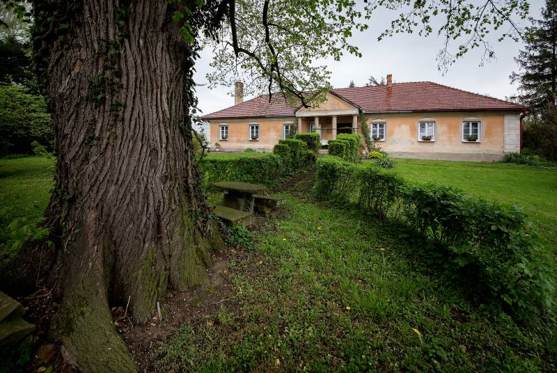 Dwór powstał w XVII w. Został gruntownie przebudowany w 1825 r. przez ówczesnych właścicieli Komorników. Niewielki, parterowy dworek uzyskał wówczas formę klasycystyczną. Od frontu powstał czterokolumnowy portyk, stanowiący jedyną ozdobę dworu. Doryckie kolumny wspierają tu trójkątny tympanon, na którym widnieje kamienny herb Ostoja używany przez rodzinę Finków. Weszli oni w posiadanie dworu w 1838 r. Podobny czterokolumnowy portyk, jednak z drewnianym trójkątnym frontonem, znajduje się od strony ogrodu. Namiotowy dach kryty jest dachówką. Obok dworu rośnie prastary dąb o pomnikowych rozmiarach. Na terenie ogrodu przy dworze znajduje się również żelazny krzyż ustawiony na kamiennym postumencie, tj. ułamanej kolumnie. Krzyż upamiętnia wydarzenia rabacji galicyjskiej, kiedy to chłopi z okolicznych miejscowości niemal na śmierć pobili Juliana Finka, właściciela tutejszego majątku. Dwór pozostaje wciąż własnością prywatną – należy do spadkobierców ostatniego przedwojennego właściciela Wawrzyńca Stojka, który kupił go od Finków w okresie międzywojennym.