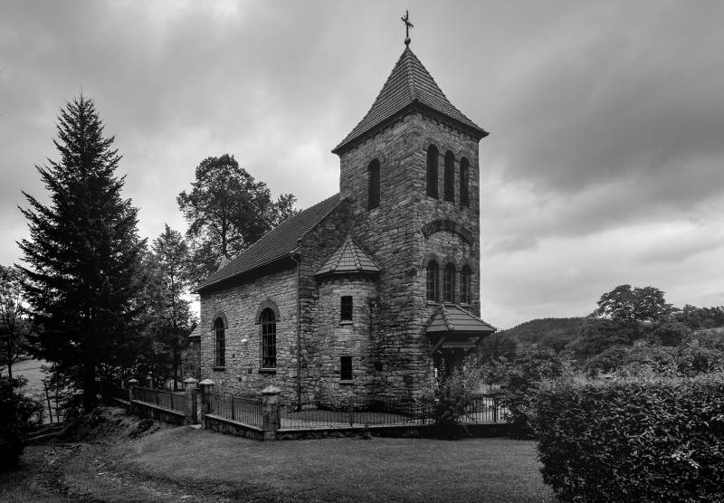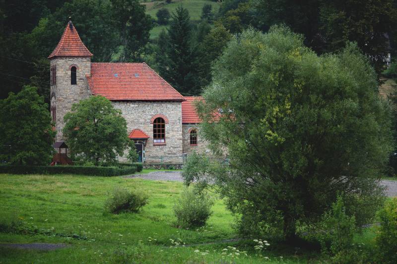 Kościół filialny z 1896 r. powstał z inicjatywy księdza Jana Ślusarza jako niewielka kaplica. Rozbudowana do obecnych rozmiarów w 1905 r., osiem lat później stała się kościołem parafialnym odrębnej parafii w Węglówce. Kamienna budowla w stylu neoromańskim ma surowe, nietynkowane ściany z ceglanymi łukami nadokiennymi. Obszerną nawę, mniejsze prezbiterium zamknięte półokrągłą absydą oraz kwadratową wieżę dostawioną do nawy od zachodu przykrywają dachy dachówkowe. Kościół ma bardzo skromne, neobarokowe elementy wyposażenia wnętrza z ołtarzem głównym i dwoma bocznymi.