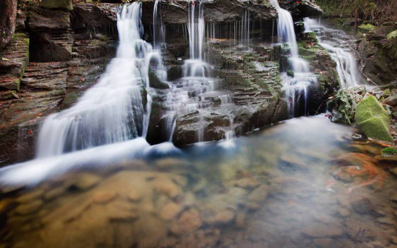 Urokliwe miejsce, trudno dostępne i skryte w głębokiej dolinie potoku Wielka Suszanka w jego górnym biegu między grzbietem Działów a ramieniem opadającym z Łysiny na południowy zachód z osiedlem Marszałki. Dolina w tym miejscu jest porośnięta gęstym lasem mieszanym. W miejscu zwanym Wielką Skałą, w korycie potoku jest kilka skalnych progów, z których najwyższy osiąga aż 2,3 m, tworząc efektowny zwłaszcza w okresie większych opadów wodospad.