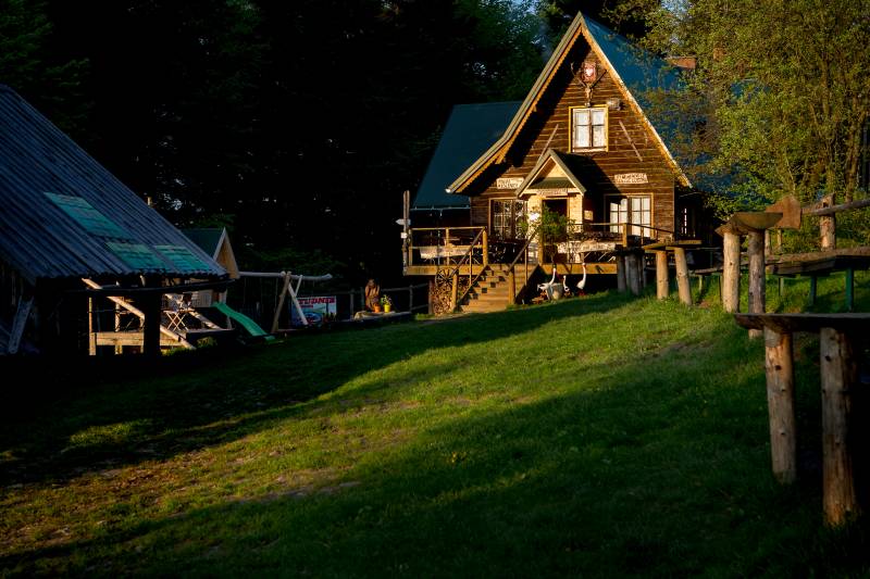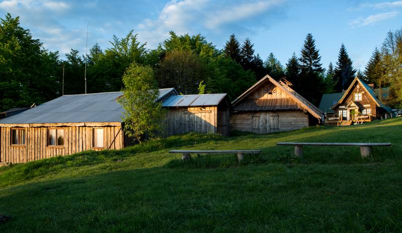 Oryginalna nazwa tego schroniska PTTK pochodzi od niedalekiego przysiółka Kudłacze, stanowiącego część wsi Pcim Sucha. Schronisko powstało w 1991 r., jednak otwarto je dopiero cztery lata później. Jest pierwszym i jedynym schroniskiem PTTK w Beskidzie Makowskim (Średnim). Dysponuje ponad 50 miejscami noclegowymi. Z okolic schroniska rozciąga się piękna panorama sięgająca od zachodniej części Beskidu Wyspowego z Lubogoszczą, Szczeblem, Luboniem Wielkim i Zembalową, poprzez Beskid Średni z Kotoniem, Koskową Górą, Babicą i Uklejną, po Babią Górę oraz Leskowiec w Beskidzie Małym. Na południu przy dobrej widoczności widać Gorce oraz Tatry. Przy schronisku działa Izba Pamięci Walk Partyzanckich oraz ekspozycja „Lotnicze ślady na Ziemi Myślenickiej”, stanowiąca przystanek Małopolskiego Szlaku Historii Lotnictwa
