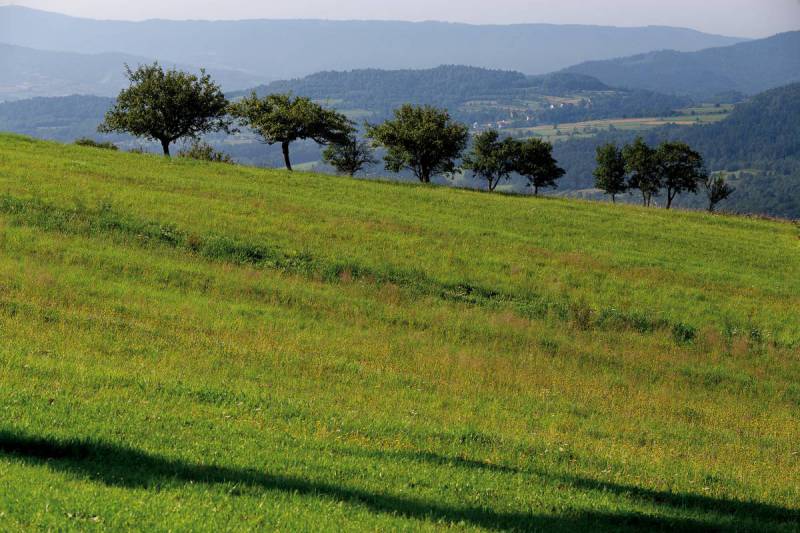 Z wysoko położonej na południowym zboczu góry Chełm Roli Swachtowo z niewielkim osiedlem rozciąga się ciekawy widok. Dzięki położeniu na lekko wysuniętym garbie, opadającym na południe z głównego wierzchołka Chełmu, można stąd obserwować nie tylko strome, zalesione zbocza Kotonia po drugiej stronie doliny Raby, ale także spojrzeć dalej w głąb doliny ku szczytom Lubnia i Szczebla, a także na grzbiet opadający od głównego Pasma Lubomira i Łysiny ku południowemu wschodowi. Mamy także wgląd w górę doliny potoku Trzebuńka, między pasma Koskowej Góry a Babicy.